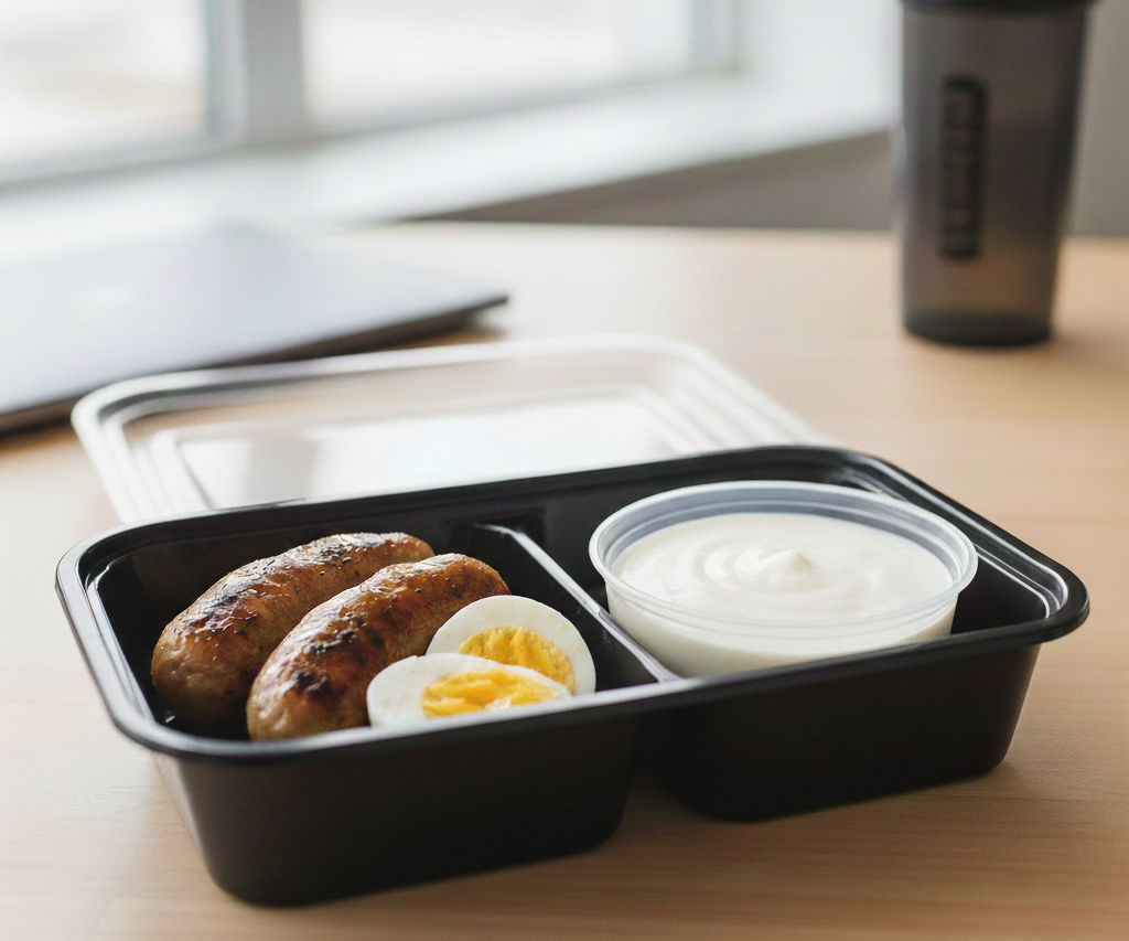 Microwave sausage (only) 30-45 seconds on high until internal temperature reaches 165°F. Do NOT microwave hard-boiled egg!